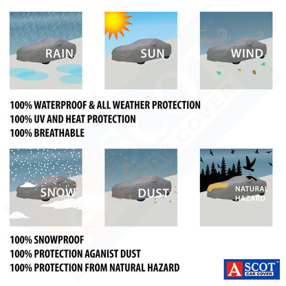 WEATHERPROOF - Ascot 3 Layers Car Covers are made of Heavy-Duty Materials. (1) Peva & Pe are 100% Waterproof, It’s Great for Rainproof and Dustproof. (2) Anti-UV Coating & Sunproof, Keep Car Cool in Hot Days. (3) Thicker Cotton Protect Vehicle Paint. Ascot Multi-Layer Car Body Cover are Much Thicker and More durable than others.